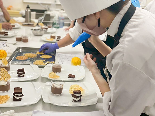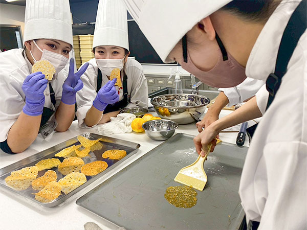 現在の食材事情と昔との違いや、素材の組み合わせ方の考え方など、パティシエとして必要な知識を丁寧にご指導いただき、学生たちがプロとしての視点を学び、今後の進路や制作に活かせる有意義な時間となりました😊🤍