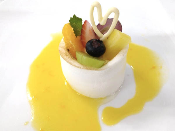 1年生の「ムース・パッション」は、ハチミツのメレンゲの中にパッションフルーツのムースを絞って飾り付け🍯
